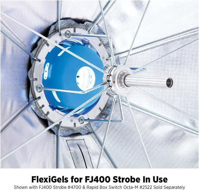 Reusable Gels that Fit Like a GloveFlexiGels are the last color gels youll ever need to buy. They are durable, heat-resistant, and fit like a glove over the FJ400 strobes glass dome. Slide one of these flexible rubber gels on for endless creative lighting options. No gaffers tape or clips are required to hold them in place. FlexiGels are also compatible with third-party strobes that have a 2-inch height x 3.4-inch diameter glass dome and adequate ventilation hole alignment.