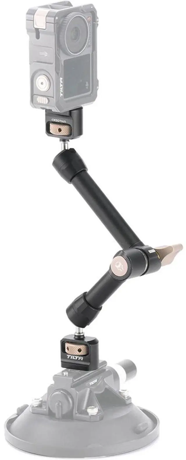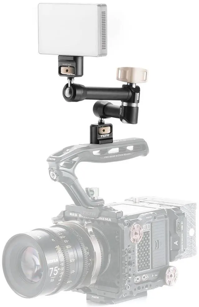 The unique articulating design, coupled with a single tie-down lock for all axes, allows for effortless repositioning of accessories in dynamic shooting environments. Despite its lightweight construction at just 11oz, this sturdy arm boasts an impressive load capacity, supporting weights of up to 11lbs. This makes it the most robust articulating arm in Tilta's current lineup.