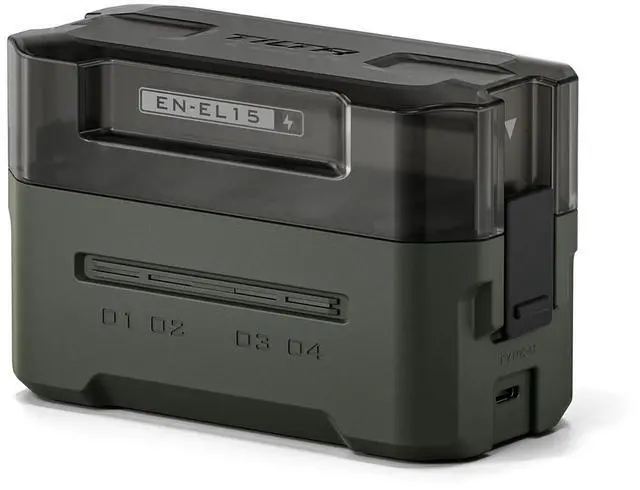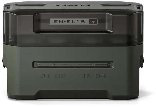 Introducing the Tilta Portable Charging Station for EN-EL15C (4 Channel). This compact charging station is designed to support Nikon and third-party EN-EL15C batteries, offering four slots for easy charging and convenient storage.Equipped with 45W PD Fast Charging, it delivers an impressive 68% faster charging speed than a standard single charger, ensuring your batteries are ready for action in just 3 hours.Real-time charging status indicators keep you informed on the status of each battery and the lightweight design means the unit weighs only 171 grams, ensuring it is easy to travel with. With the ability to fully charge four EN-EL15C batteries, users will be ready for up to 13 hours of video recording or enough power to handle 2,400 photos, perfect for long shooting sessions.The Tilta Portable Charging Station features an EDC-style design with Tilta's signature aesthetic, making it a stylish and functional addition to your gear. Whether you're on a professional shoot or capturing personal moments, this versatile charger provides the power you need in a convenient, portable package.Note: This Charging Station does not feature an internal battery and can only be used to charge batteries when connected to an external power source.