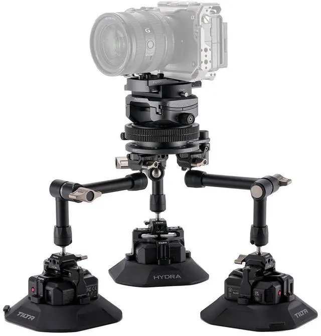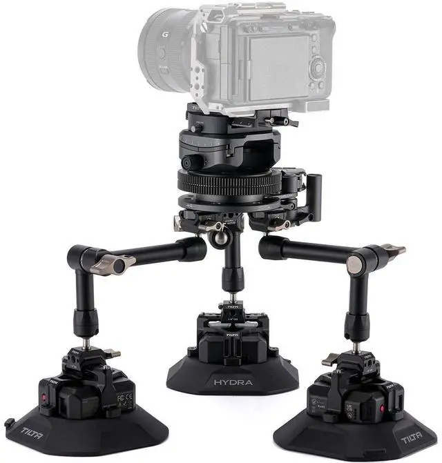 Introducing a one of its kind collaboration: the Hydra x Dan Ming Speed Pan SystemThe Speed Pan System allows users to capture high speed pans through the precise control of a wireless follow focus motor. The foundation of this system is a rotatable base with geared teeth for a focus motor to rotate. Cameras with a small form factor like action cameras or DSLRs can then be mounted via a quick release plate. This base also features an adjustable tilt axis which helps with framing and creating unique angles. At the bottom of this base you'll find three NATO rails which can be used to attach articulating arms and suction cups as well as other custom support systems. The Pro Kit includes three heavy duty articulating arms as well as three electronic suction cups. This provides a secure and flexible mounting option for aligning the system in a variety of angles on a vehicle. This system is designed to help capture the high speed action typically found with car to car filming, but can be used in other creative shooting scenarios via the multiple mounting points on the unit itself such as NATO and 1/4"-20 threads. Dan Ming served as both 1st AC and Systems Engineer on