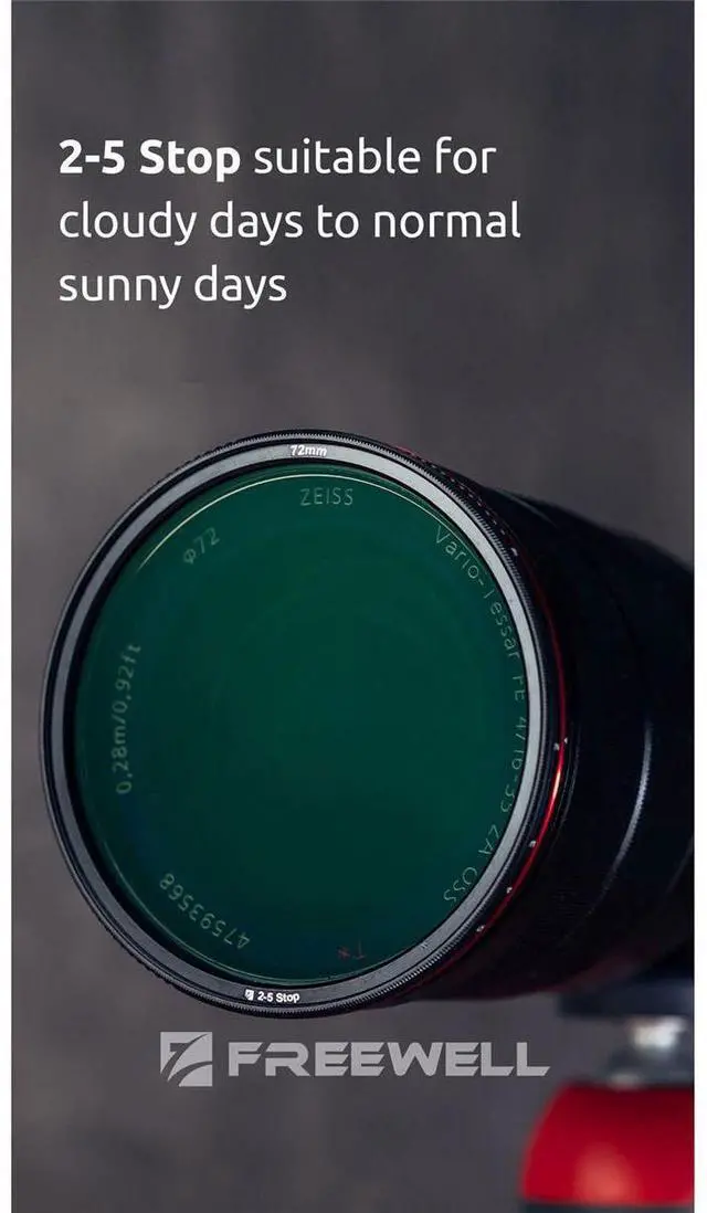 Functionally versatile, this filter's 2-5 stop range is equivalent to ND4-ND32, making it the perfect companion for a standard day, from overcast conditions to bright, sunny environments. The threaded design ensures a secure and seamless fit to a wide array of lenses, enhancing your camera's capabilities without compromising on image quality. Whether you're capturing the subtle nuances of a cloudy day or the dynamic intensity of a sunlit scene, this reliable and effective 72mm Variable ND filter is an indispensable tool for photographers and videographers seeking to elevate their standard day imagery with professional finesse.