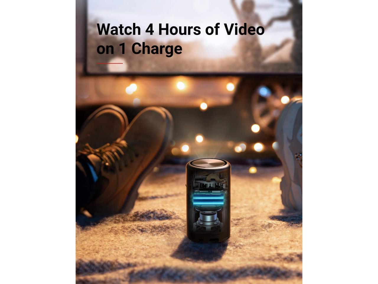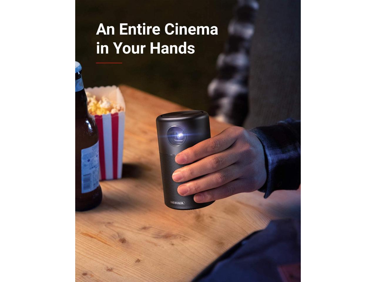 Nebula Capsule, by Anker, Smart Wi-Fi Mini Projector, Black, 100 ANSI Lumen Portable Projector, 360° Speaker, Movie Projector, 100 Inch Picture, 4-Hour Video Playtime, Outdoor Projector—Watch Anywhere