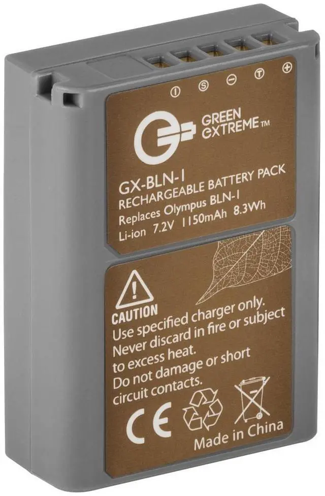 After extensive research and development, Green Extreme presents the BLN-1 Lithium-Ion Battery Pack, a high-capacity, durable, and reliable power source designed specifically for Olympus mirrorless cameras. With a robust 7.2V and 1150mAh capacity, this battery pack ensures extended shooting times, reducing the need for frequent recharging. Engineered to meet or exceed original manufacturers' specifications, this battery pack offers compatibility and performance that rivals the original Olympus BLN-1 battery. It's the perfect companion for your Olympus camera, including popular models like the E-M5 and E-P5. Green Extreme is committed to energy responsibility, and this commitment is reflected in the BLN-1 Lithium-Ion Battery Pack.