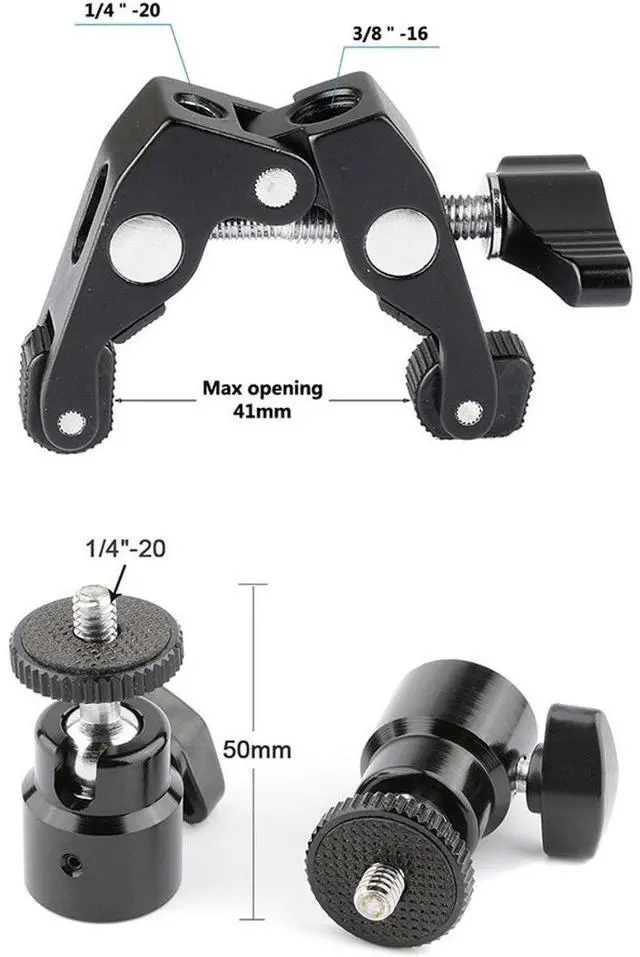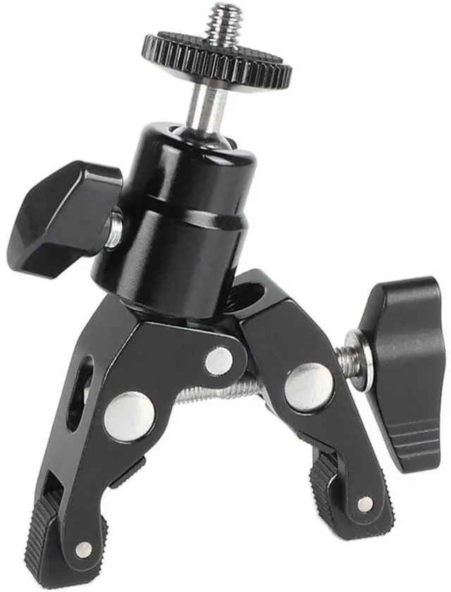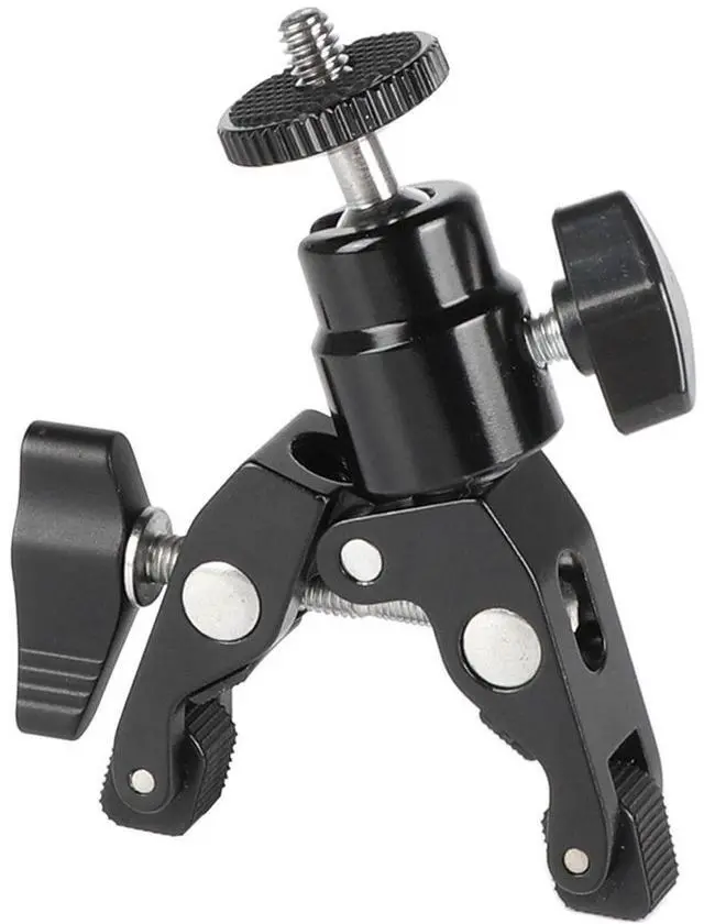 Take your photography and videography to the next level with the CAMVATE Super Crab Clamp with Mini Ball Head. With a sturdy capacity of 3 lbs, this versatile tool is perfect for securing a variety of accessories to flat or round surfaces up to 41mm wide. Whether you're mounting monitors, LED lights, or other camera accessories, this clamp ensures a secure and stable hold. The CAMVATE Super Crab Clamp is integrated with a mini ball head holder, featuring a double-ended 1/4"-20 male screw adapter. This design allows for a high degree of flexibility, enabling you to customize your setup to suit your specific needs.