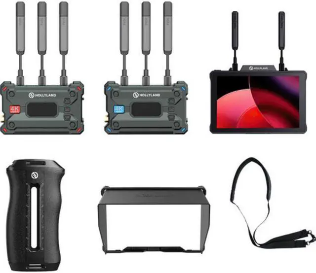 Hollyland. The Pyro 7 takes the previous M1 transceiver/monitor and makes everything bigger and better with a bright 7" touchscreen display, dual L-series battery plate, wireless transmission up to 1300' away, updated HollyOS imaging tools, SD card video recording, HDMI/SDI input/output, RTSP streaming, one Pyro 7 sends to up to four receivers, as well as auto dual-band 2.4/5 GHz hopping and auto-frequency hopping.