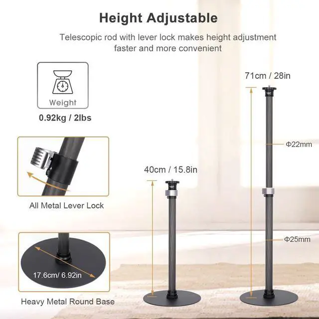 Koolehaoda Monopod Stand for Desk, 16"-28" Adjustable Carbon Fiber Extension Rod with Heavy Base, Table Mount Stand for DSLR Camera, Light, Webcam, Live Streaming, Vlogging