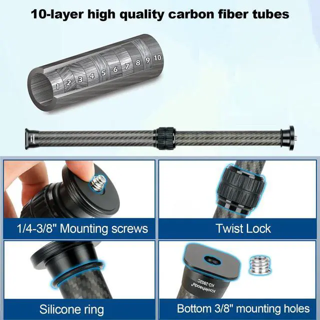 Koolehaoda Tripod Extension Pole, 2-Section Center Column Carbon Fiber Extender Rod Telescopic Stick Monopod with Arca Port for Tripod/Ball Head/Gimbal/Camera, Max Load 33lb