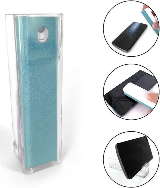 Acuvar All In One Screen Cleaning Spray with Microfiber and Phone Stand All in one design, combining cleaning function with a phone stand function. The slim and solid design of the Spray Bottle and Stand make it extremely convenient to carry and to travel with. The protective outer shell doubles as a phone stand that will keep your device at a comfortable viewing angle to enjoy your favorite content without holding your phone. The cleaning spray mists the right amount of cleaning fluid to wipe off with the soft microfiber side of the bottle. It cleans and removes grime or dirt effortlessly and without streaks.