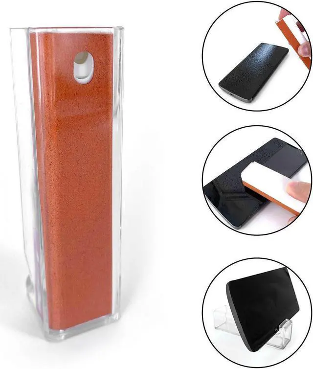 Acuvar All In One Screen Cleaning Spray with Microfiber and Phone Stand All in one design, combining cleaning function with a phone stand function. The slim and solid design of the Spray Bottle and Stand make it extremely convenient to carry and to travel with. The protective outer shell doubles as a phone stand that will keep your device at a comfortable viewing angle to enjoy your favorite content without holding your phone. The cleaning spray mists the right amount of cleaning fluid to wipe off with the soft microfiber side of the bottle. It cleans and removes grime or dirt effortlessly and without streaks.