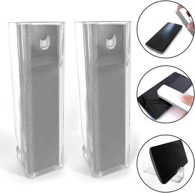 Acuvar All In One Screen Cleaning Spray with Microfiber and Phone Stand All in one design, combining cleaning function with a phone stand function. The slim and solid design of the Spray Bottle and Stand make it extremely convenient to carry and to travel with. The protective outer shell doubles as a phone stand that will keep your device at a comfortable viewing angle to enjoy your favorite content without holding your phone. The cleaning spray mists the right amount of cleaning fluid to wipe off with the soft microfiber side of the bottle. It cleans and removes grime or dirt effortlessly and without streaks.