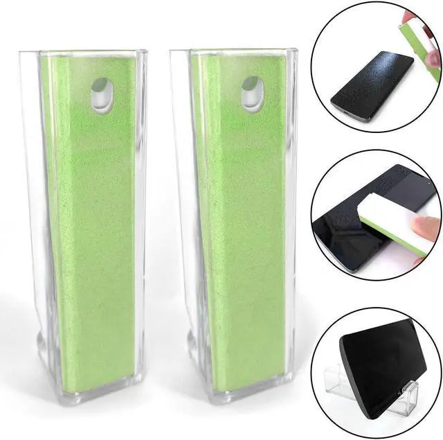 Acuvar All In One Screen Cleaning Spray with Microfiber and Phone Stand All in one design, combining cleaning function with a phone stand function. The slim and solid design of the Spray Bottle and Stand make it extremely convenient to carry and to travel with. The protective outer shell doubles as a phone stand that will keep your device at a comfortable viewing angle to enjoy your favorite content without holding your phone. The cleaning spray mists the right amount of cleaning fluid to wipe off with the soft microfiber side of the bottle. It cleans and removes grime or dirt effortlessly and without streaks.