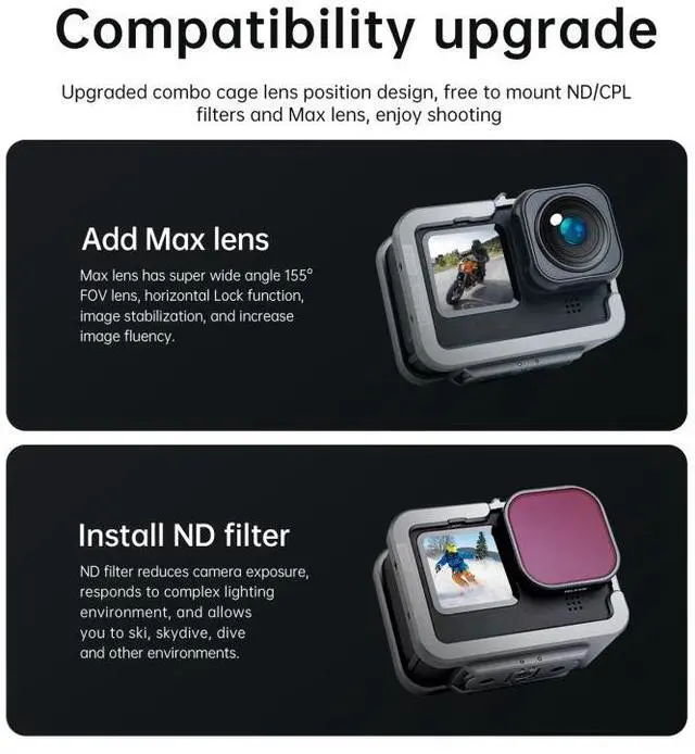 1. Upgrade the cage-free structure, you can freely install ND / CPL filters, Max lens and tempered film