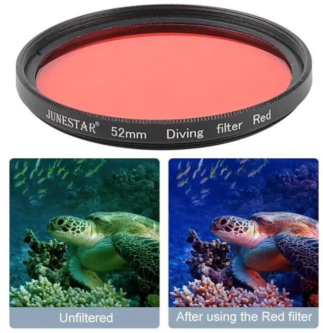 4. Professional color correction for blue and tropical water, red filter is suitable for diving at depth of 16-68ft to supplement the red color absorbed by seawater.