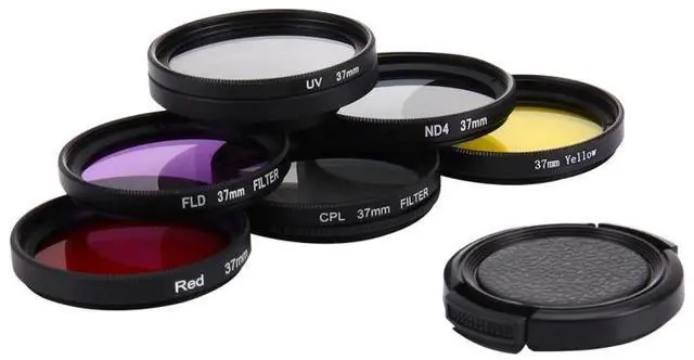 2. 7 in 1 big pack: CPL filter + UV filter + ND4 + red + yellow + purple(FLD) and lens protective cap in one pack.