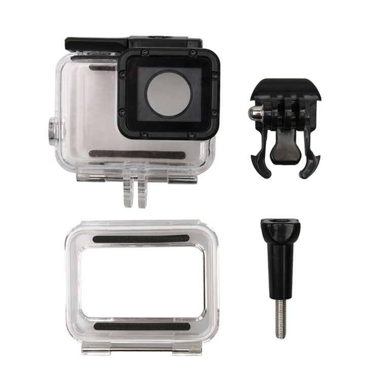 1. Made of hard plastic material, durable to use. 2. The shell adopts imported high quality material, professional design and manufacturing, thus has good waterproof performance up to 30m depth of water. 3. One buckle basic mount and one long screw are attached to this item. 4. With a hollow back cover. You can change the original back cover, and touch the screen with openning the case. Please note that this housing is not waterproof if you install with the hollow back cover. 5. Note: The camera is not included.