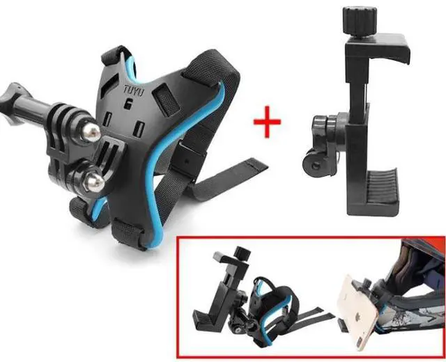 TUYU Motorcycle Helmet Chin Action Camera Mobile Phone Mounting Bracket Blue Bracket+Mobile Phone Clip Blue Bracket+Mobile Phone Clip
