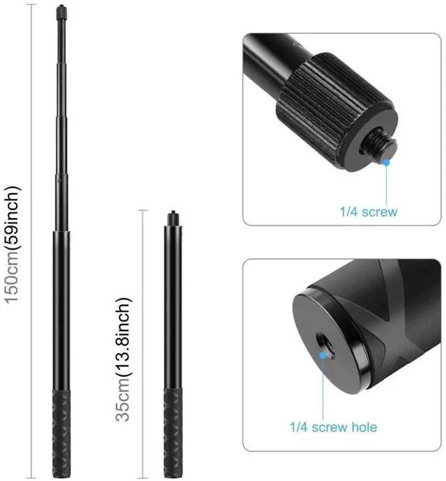4. With a 150cm telescopic selfie stick, the height is 35cm after contraction and up to 150cm after extension; the eccentric tube design allows the length to be stretched at will, and each section can be locked separately;