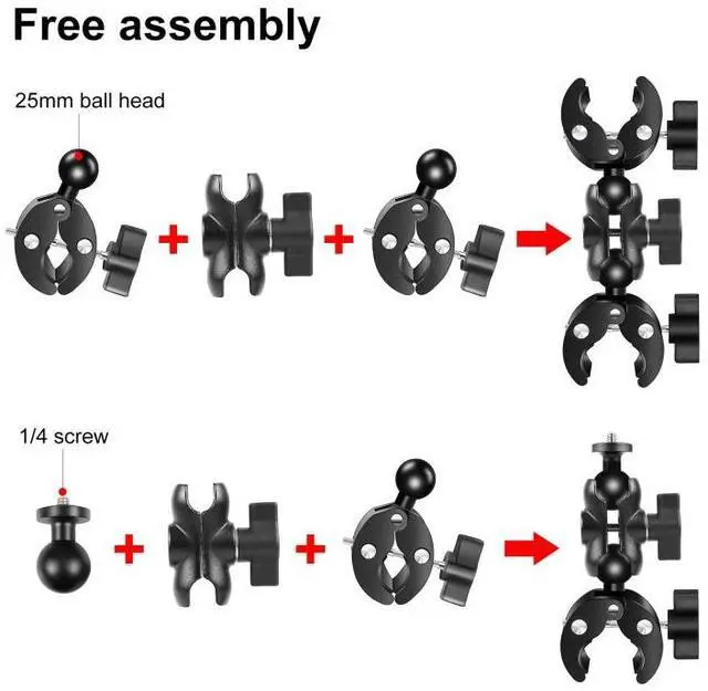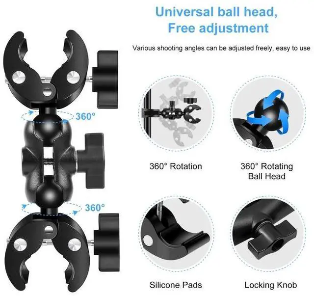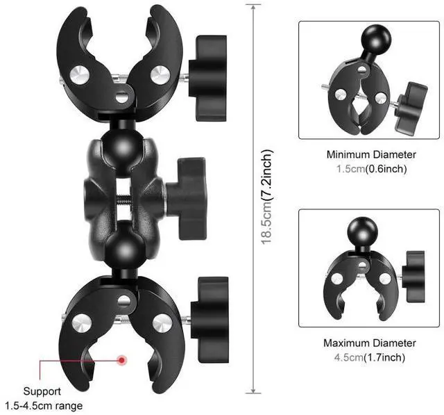 3. The clamp can support handlebars or poles with a diameter range of 1.5-4.5cm; the bracket universal ball head design can adjust a variety of shooting angles;