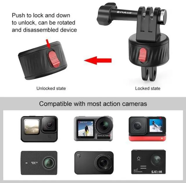 4. Locking Function: Rotate the knob in the middle to quickly lock the camera, making it safer. After locking, the mount can be used for various vigorous activity, such as running, jumping, cycling, skiing, etc.