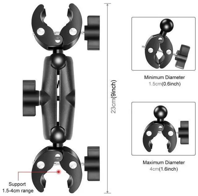 3. The double-headed clamp supports handlebars, crossbars, selfie sticks, etc. with a diameter of 1.5-4cm;