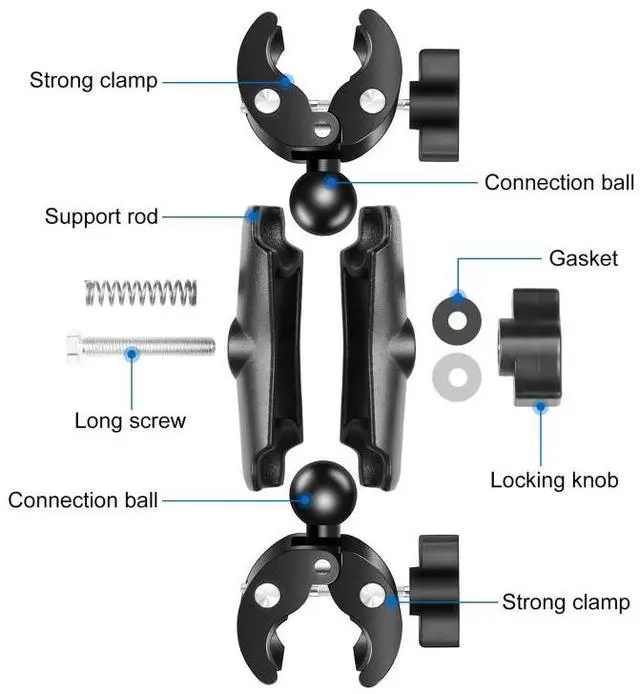 1. The strong clamp is made of high-quality plastic, and the bracket link rod is made of aluminum alloy, which is durable;