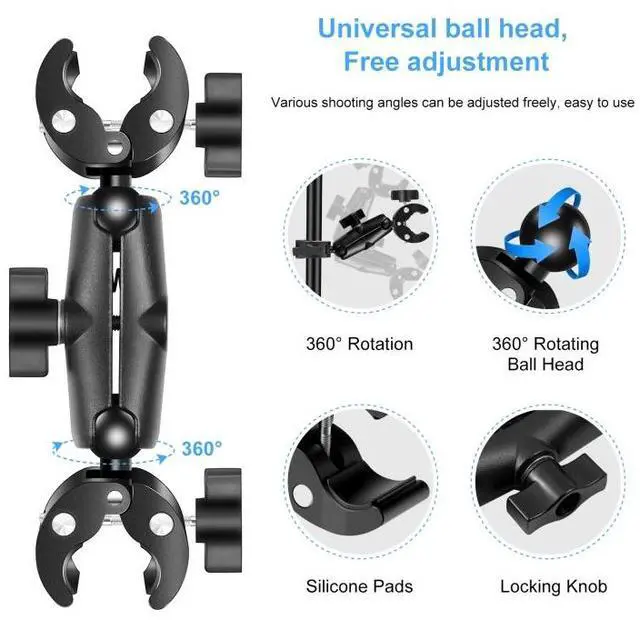 4. The universal ball head design of the bracket can rotate 360 degrees and adjust various angles;