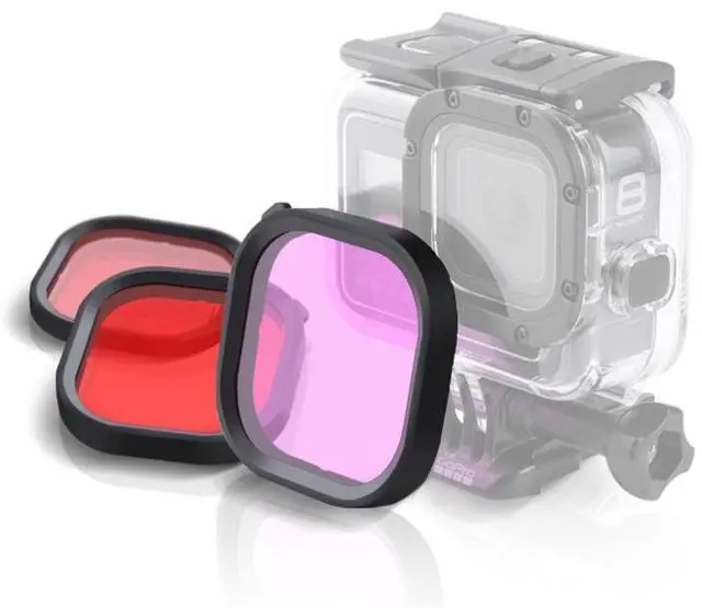 Pink Purple Red 3 Color Square Housing Diving Lens Filter Kits for GoPro HERO8 Black Original Waterproof Housing