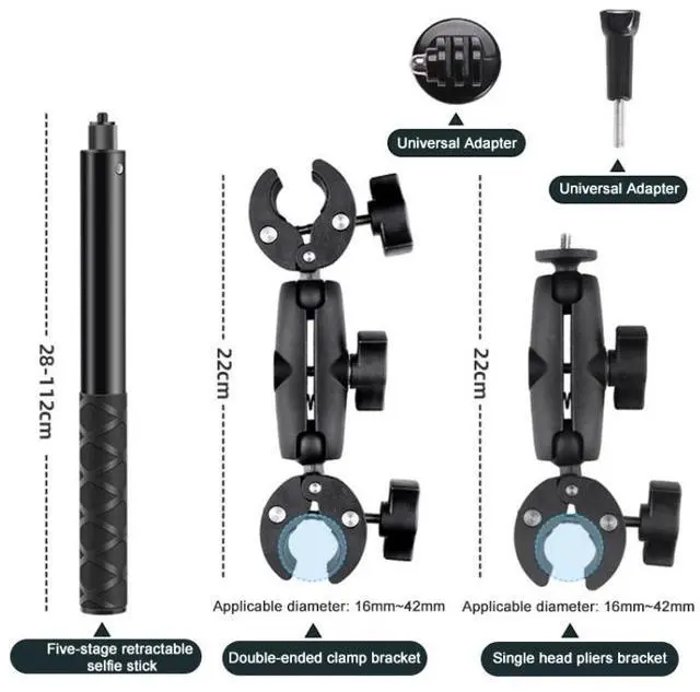 5. Widely used to install panoramic cameras, sports cameras, mobile phones, convenient for the first perspective shooting, can be used for live broadcast, selfie, etc.; Can also be used to link the installation of vehicle navigation