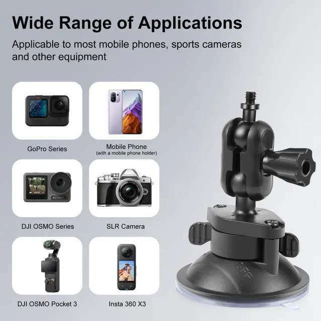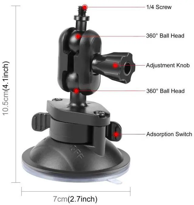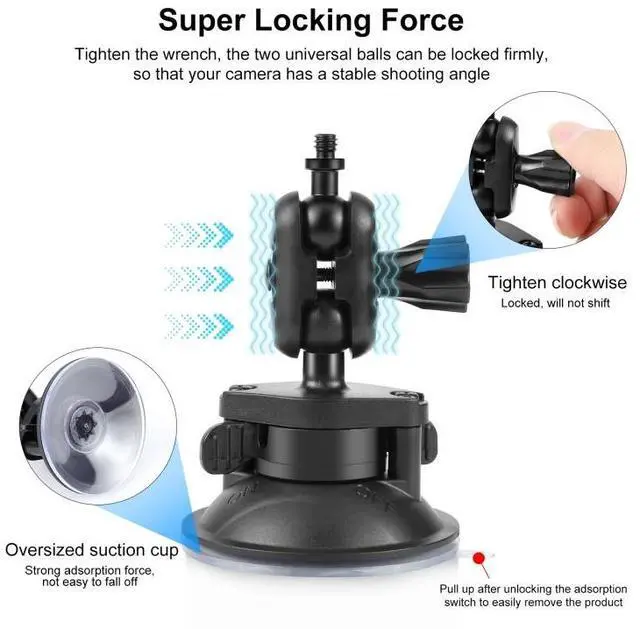 1. Suction cup: Strong suction cup, and with positive and negative knobs to lock or loosen, conveniently attaches to dashboard, windshield or any other smooth surface, will not fall off and is easily removable