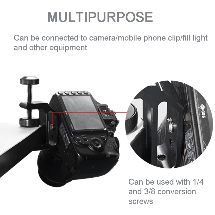 4. The camera or flash can be firmly fixed on the heavy-duty mounting clip, stable and durable.