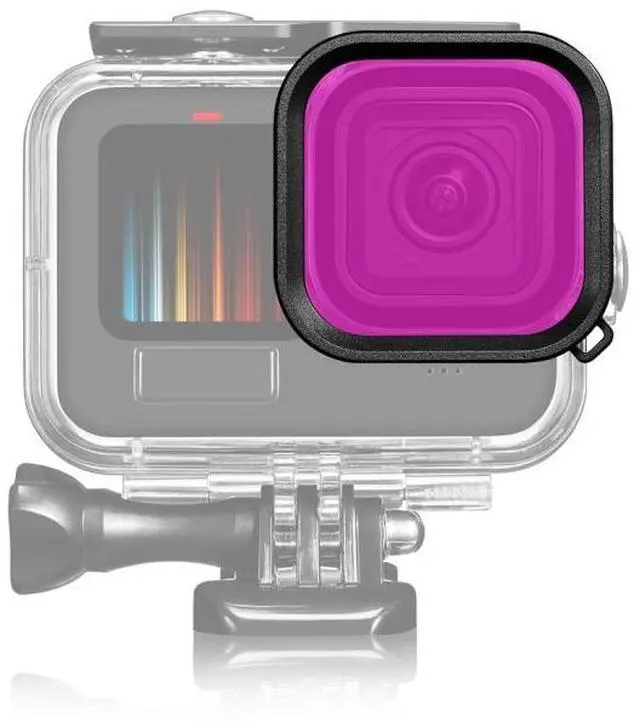 - Purple filter: Purple filter: The purple filter is color-corrected when shooting in green sea water with a depth of 5 to 25 meters. It is ideal for in freshwater lakes, fresh reservoirs or in salt water where because of green algae to take pictures.