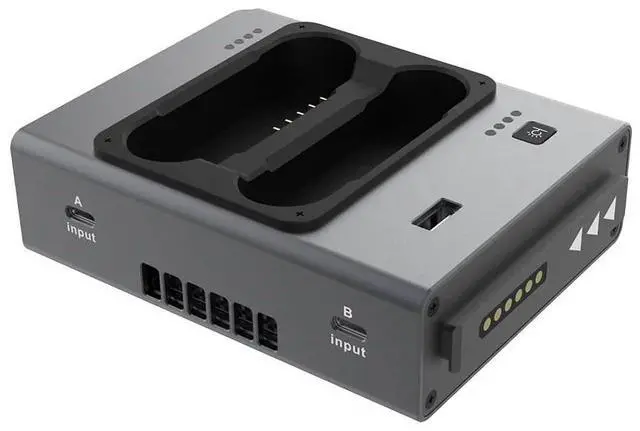 Its ability to charge two smart batteries simultaneously streamlines your workflow, ensuring you are never caught off-guard by power depletion. The dual USB-C power inputs support up to 100W, maximizing efficiency and flexibility in powering up your batteries. One of the standout features of the DQC2 is its innovative daisy chain design, which allows you to dock up to three DQC2 chargers together. This capability enables you to charge a total of six smart batteries simultaneously, with units locking together securely for a stable and reliable connection. The user-friendly design includes charging indicator LEDs that can be easily toggled on or off with a simple button press.