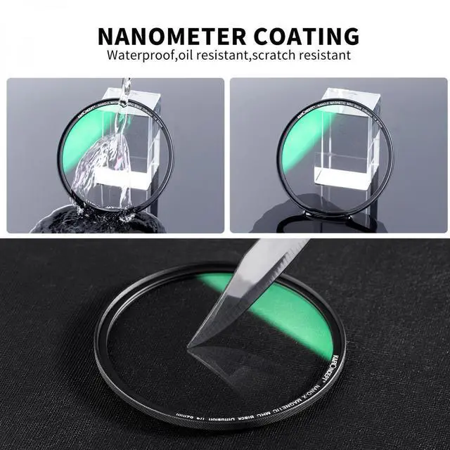 After the glass is optically polished, a high-tech film is plated on the surface. "Moldproof", "Waterproof", "Anti-scratch" and "Anti-greasy". While having the characteristics of hard scratching, it will not have any impact on the image quality, even if it is contaminated with water droplets or oil, it can be easily removed. Equipped with aviation-grade aluminum alloy material magnetic lens cover, both magnetic and threaded, can be installed on the lens, two-in-one function.