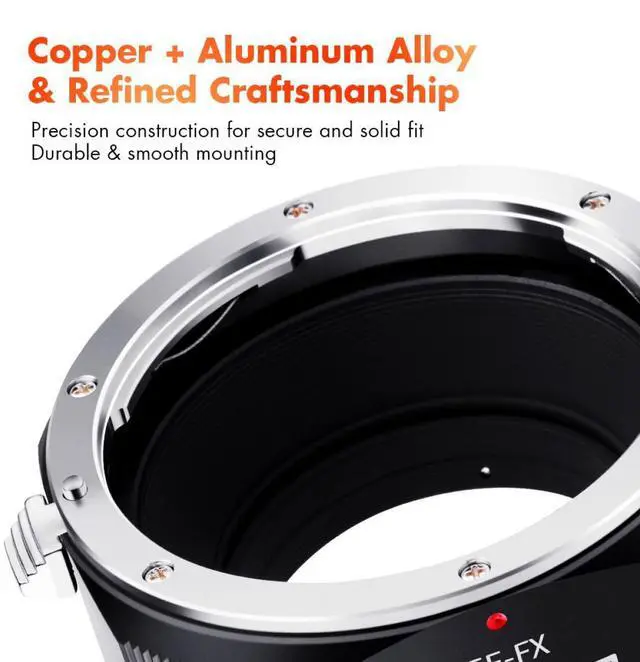 When seeking to expand your photographic capabilities, the M12115 Canon EOS EF Lenses to Fujifilm X Lens Adapter Ring is an essential tool. This high-quality, durable adapter ring is designed to seamlessly connect your Canon EOS EF lenses to any Fujifilm X camera body. Crafted with precision, this compact adapter ring features a matte paint finish and orange secondary oxide for enhanced durability and aesthetic appeal. Its versatile design allows photographers to utilize a wide range of Canon EOS EF lenses, opening up a world of creative possibilities for both photography and videography.