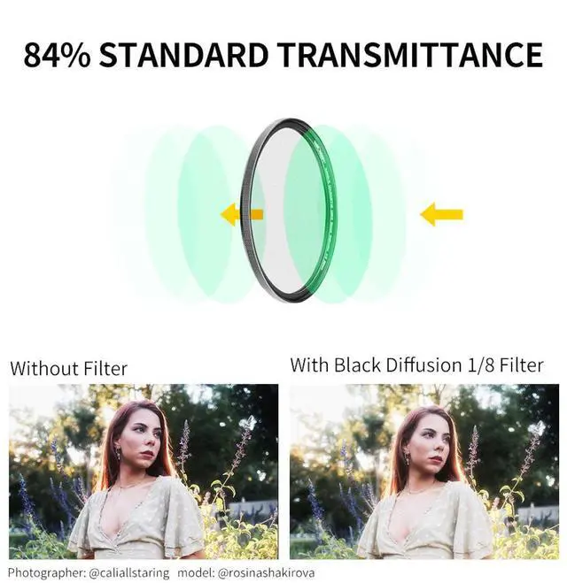 • ENHANCED IMAGE QUALITY - Achieve a dreamy, film-like aesthetic with our 1/8 black soft filter, subtly softening highlights and lowering contrast for a professional touch.