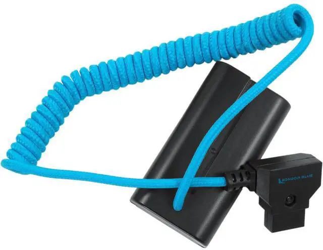 On the other end, you'll find an L-Series type dummy battery that connects directly to your device, ensuring a secure and reliable power connection. Designed by Kondor Blue, a reputable brand known for its commitment to quality, this blue coiled cable is a testament to their dedication to producing top-tier equipment for photography and videography. Whether you're a professional photographer or a hobbyist, the Kondor Blue D-Tap to NPF Coiled Dummy Battery Cable for Sony L-Series is an essential tool to keep your devices powered and ready for action.