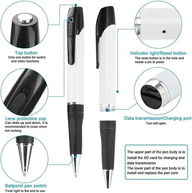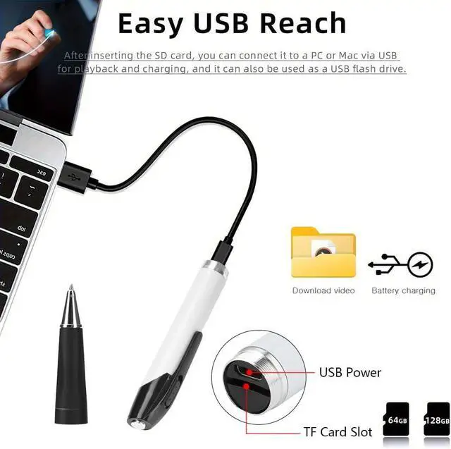 Dual-Purpose Legal Design: This pen camera functions as a regular handwriting pen (clips to notebooks/shirt pockets) for daily use, and serves as a legal recording tool for business meeting minutes, lecture notes, or lawyers official document archivingno improper use supported.