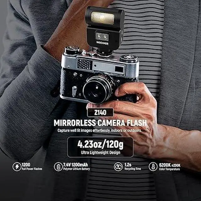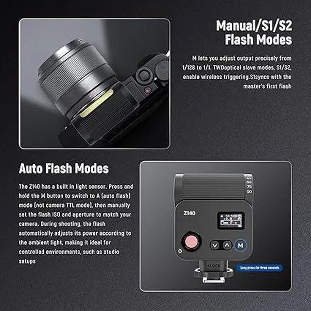 Z140 16Ws Mini Camera Flash Light, GN15 1200mAh/1200 Full Power Flashes/1.2s Recycle/6200±200K, Manual 1/128-1/1 Power & S1/S2 Mode, Speedlite Compatible with Canon Nikon Sony Fujifilm Cameras
