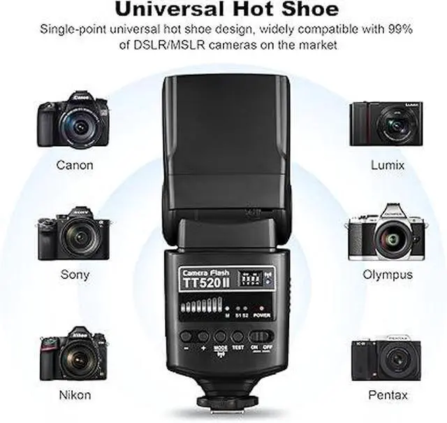 Suitable for DSLR Camera with standard hot shoe, nice replacement for Nikon, Canon, Pentax, Olympus, and so on.