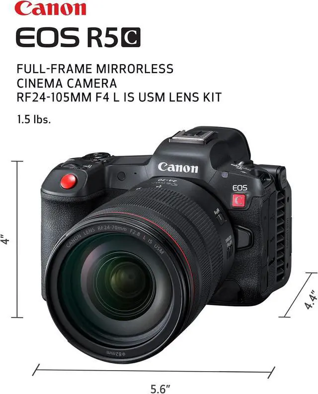 EOS R5 C RF24-105mm F4 L is USM Lens Kit 8K/60P FF Sensor Pro Cinema/Photo Camera, RF Mount, Internal RAW, 8K HDMI RAW Out, 4K/2K Oversampling, Compact, Lightweight Design, Dual Pixel CMOS AF