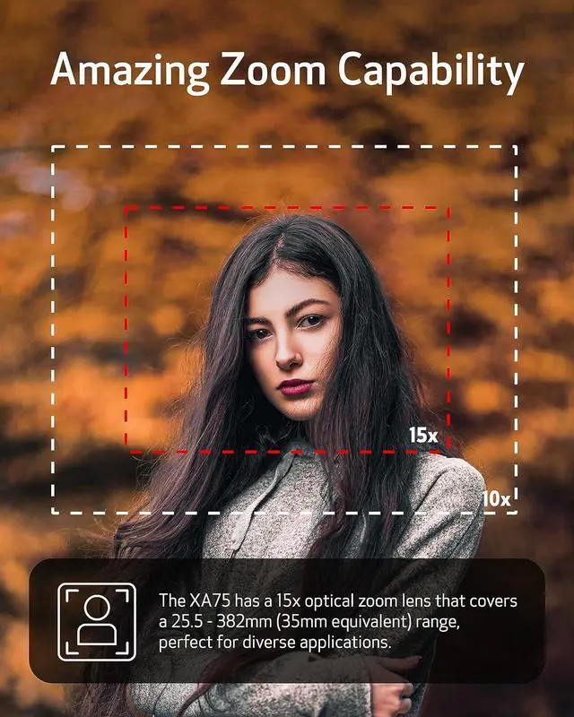 CAPTURE EVERY DETAIL: From wide-angle shots to distant subjects, the integrated the Canon XA75 professional video camera's 4K 15x optical zoom lens lets you get up close and personal for captivating videos
