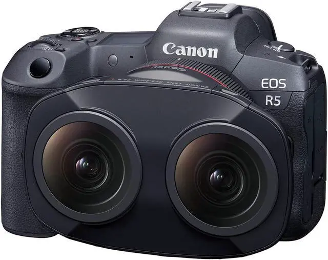 Canon EOS VR System this lens combined with an EOS R5 camera with updated firmware optimized for VR shooting (version 1.5.0 or later) and a paid subscription-based software (Canons EOS VR Utility or EOS VR Plug-in for Adobe Premiere Pro both currently in development. Availability and details to follow on or about early 2022).