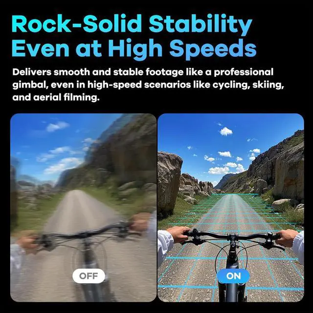360° Horizontal Correction & Stabilization - Equips with super steady stabilization algorithm. No matter how the lens rotates during shooting, the horizon remains level. It reliably performs even in high-speed motion scenarios like cycling, skiing, and aerial filming.