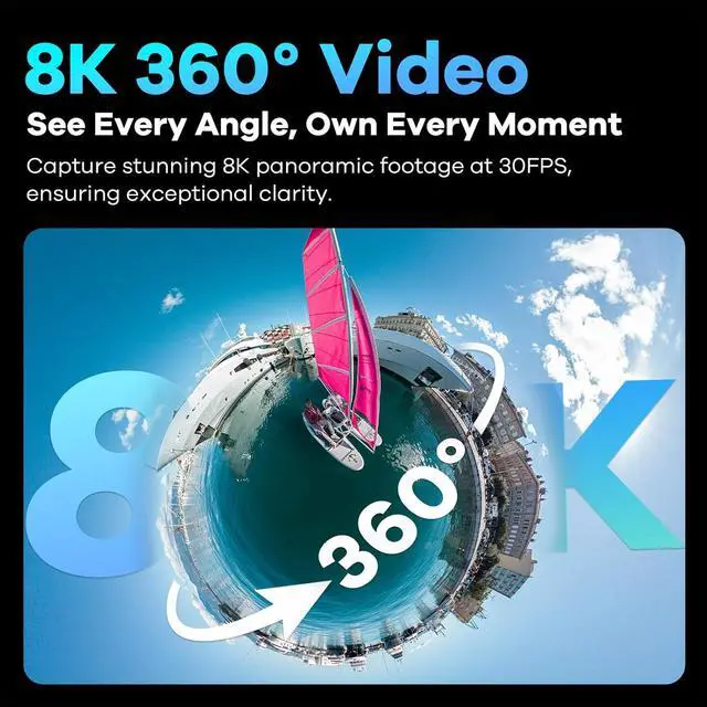 Stunning 8K@30fps 360-degree Video Effortlessly Captured immersive moment by QooCam 3 Ultra, delivering 8K@30FPS panoramic contents. Shooting in 5.7K@60FPS for keeping the fluidity of motion, and single mode in 4K@120fps, action camera functionality.