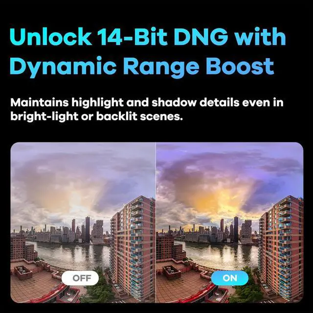 Precision Elevated, Vividly Recreating Visual Reality - Utilizing the potent processing power of Raw+ algorithm in QooCam Studio, QooCam 3 Ultra's DNG8 panoramic shots transcend optical limitations. Switch on "DR Boost" to enlarge dynamic range to 14-bit DNG, challenge undefeated clarity on image detail and breaking limits