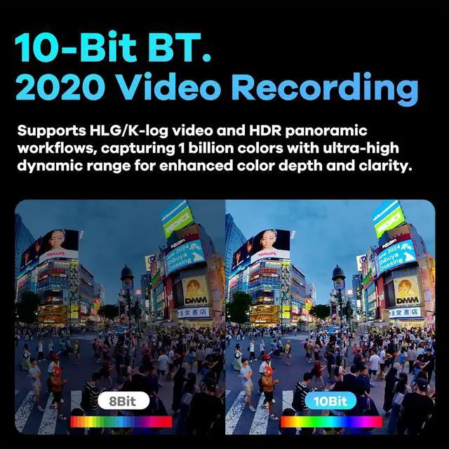 10-Bit True HDR Enhancement and BT.2020 Recording QooCam 3 Ultra elevates realism by preserving more details of highlight and shadow. Supports HLG video recording and capture up to 1 billion colors and fine details in UHD range, enhancing color depth and clarity.
