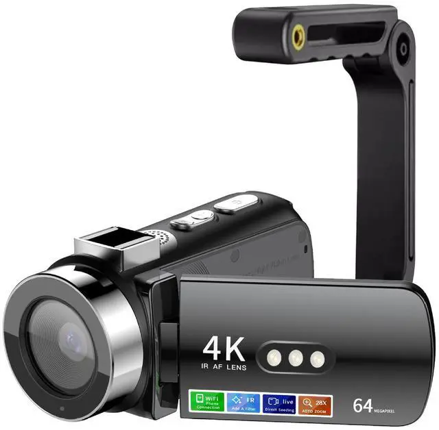 NASA 4K Video Camera Camcorder, 64MP Vlogging Camcorder, 28x Zoom Auto Focus Video Recorder Camera with 3 Inch 270 Degrees Flip Screen, Multiple Filters, LED Light D9 black D9+ support bracket