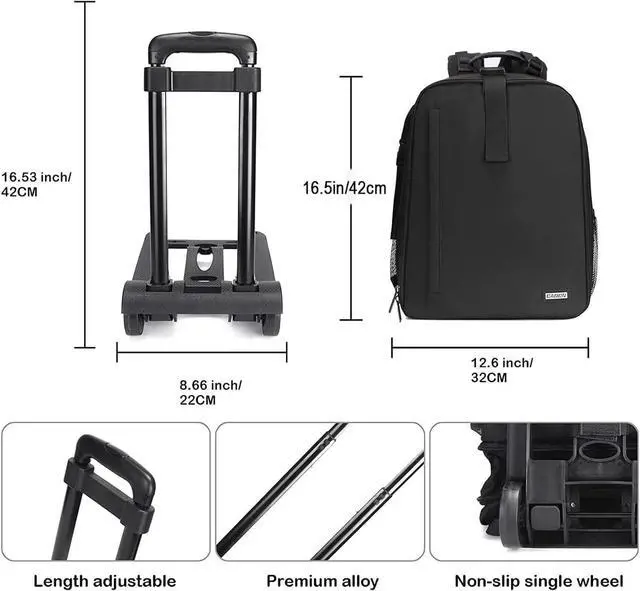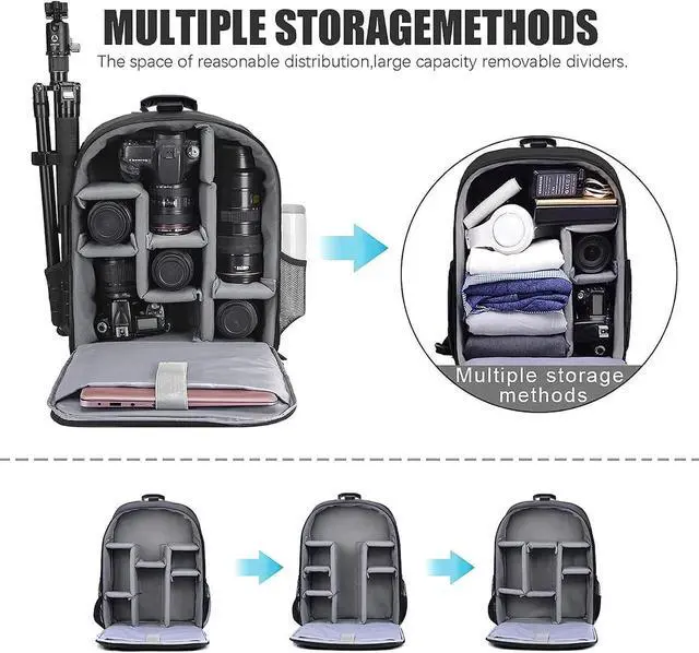 alloy zipper won't rusty within 3 years, and wont break within 5 years; One side for ipad storage with sticker fixed inside the camera bag; Inner bag paddings are made of 7-layer PE foam and PP board, well protect your camera from shocking, very durable; Shoulder belts and handle that connected with camera rusksack have taken bar-tack reinforcement technology which load-bearing up to 50kg( 110.2 lb). Best care for your cameras, lens, flashes, tripod and other accessories.