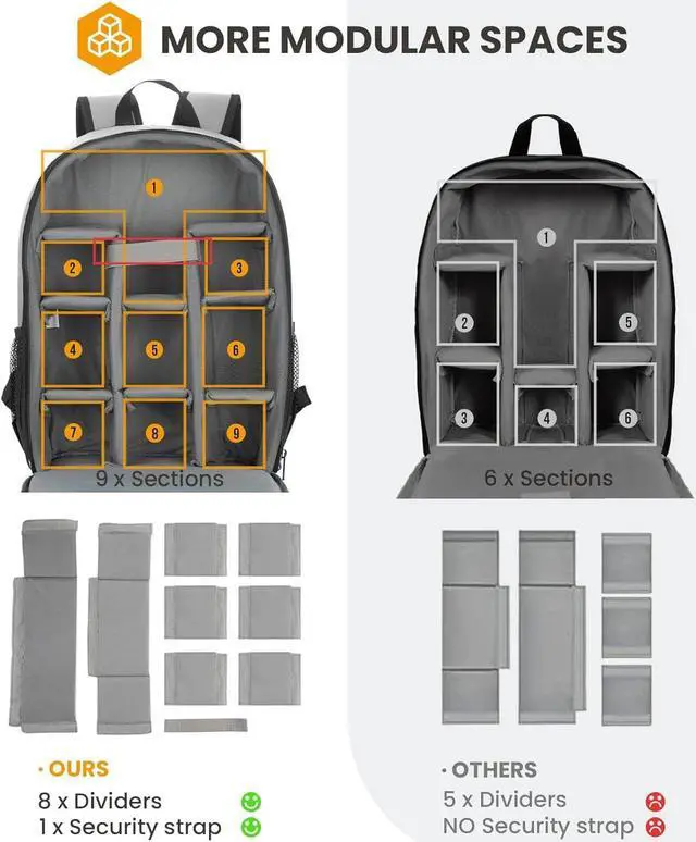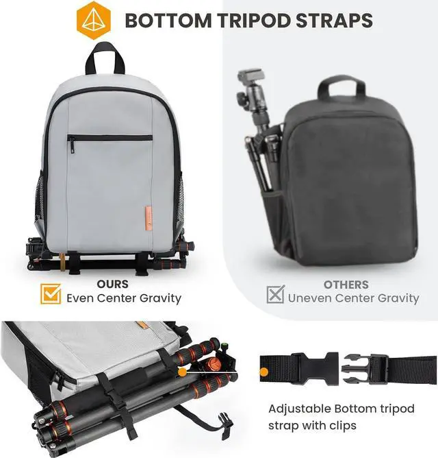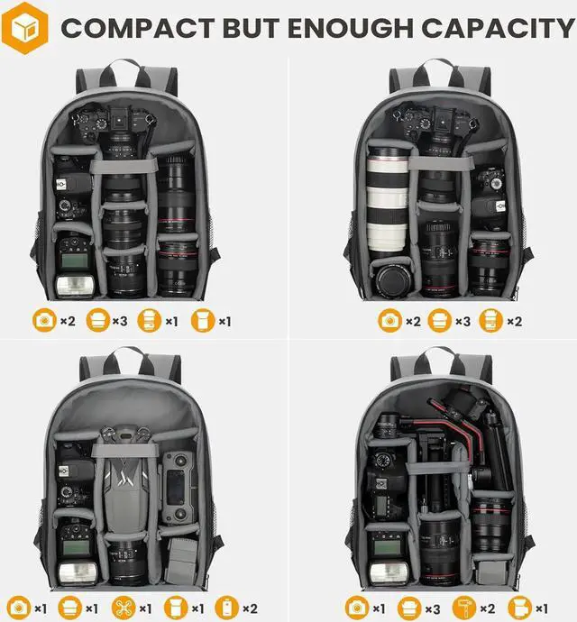 This camera gear backpack can be easily converted into a lightweight flexible simple straight daily backpack by removing the camera compartment dividers. Super easy to use for small day trips, there's enough room for personal gear.