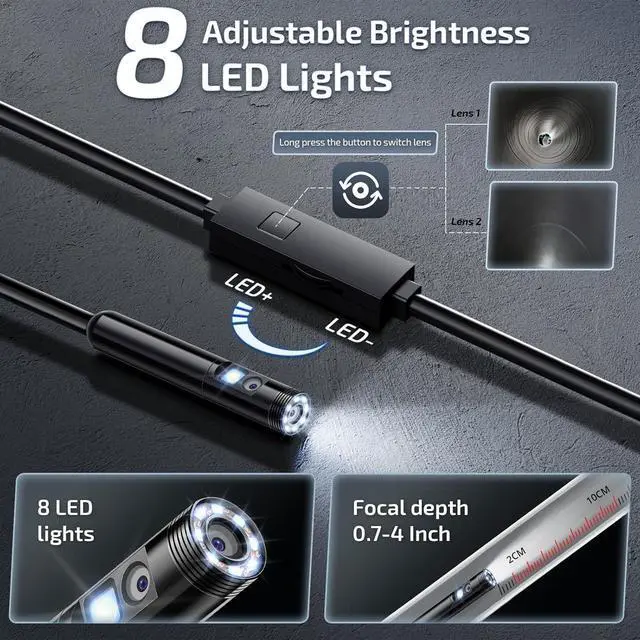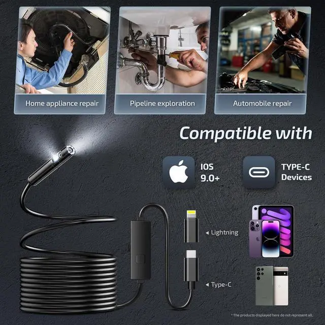 This borescope inspection camera can be easily and quickly connected to IOS 9.0 +/C devices through an interface. Search for 'USEEPLUS' in the app store or scan the QR code to download the application. With simple operations, you can view real-time images on the screen.